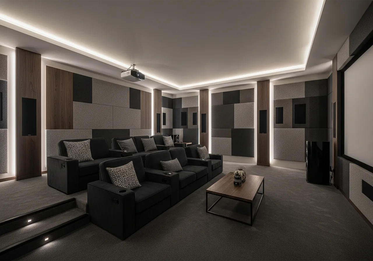 Lutron invisible keypads, architectural speakers, and motorized shades with designer fabrics.
